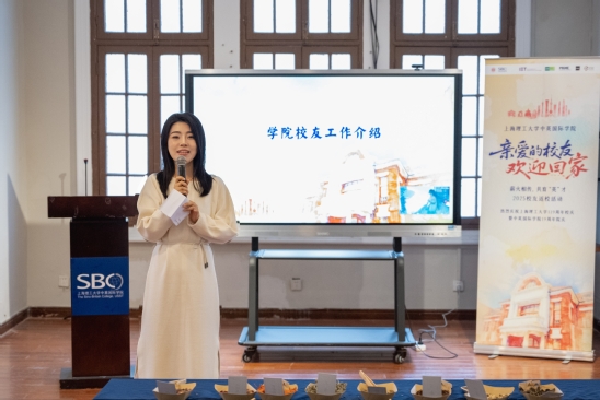 随后,学院党委副书记、副院长蔡卉对返校校友表示热烈欢迎。她介绍了近年来学院在专业建设、人才培养,特别是在创新创业领域取得的新成果,并希望校友们积极分享成长经验,引领学弟学妹前行,传承中英学子的优良风采,共筑“薪火相传”的育人桥梁。